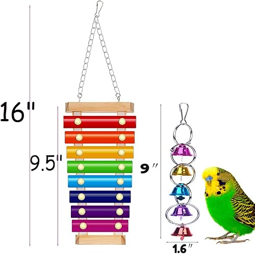 ★ 【Intelligence Bird Toys】Package includes 1 x bird hanging bell (8.7x4 inch) + 1 x hangale xylophone toy(6 x 16inch)..