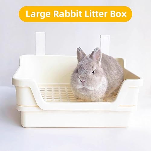 【Smart Design】The top and bottom of this litter box are detachable, making it convenient for easy cleaning. With three high sides, it effectively prevents urine splashes. The thick plastic grid offers a comfortable surface for rabbits' paws, featuring a grid size of 1.8cm x 1.5cm, allowing droppings to fall through easily. The adjustable hooks allow for secure attachment to most rabbit cages, minimizing the risk of tipping over.