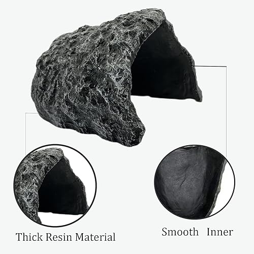 Heavy Resin Material: The reptile hide cave is made of high quality resin which is very hard, nice, solid and sturdy, adding to the sense of security for your pets as it will not move or float when they move.