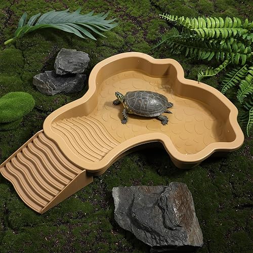 Detachable Modular Structure: External ramps and platforms can be removed for flexible space-saving storage; reptile water dish compatible with most terrariums (under-tank heating safe) for turtles, lizards, snakes up to 12" long.