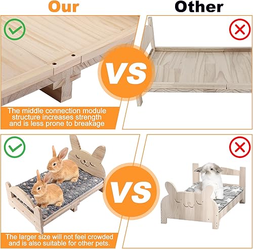 Safe & Durable Materials: Crafted from 100% natural pinewood, this bunny beds is chew-proof and free from harmful substances. The sturdy construction ensures stability while allowing your furry friends to chew without health worries