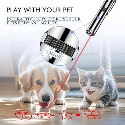 【One-Button Pattern Switch】This cat toys for indoor cats Effortlessly switch between five unique patterns (star, butterfly, smiley, mouse, and standard dot) with a simple button press. Each pattern sparks curiosity and exploration, enhancing the variety of play. not only increases the fun but also improves your pet's coordination and reaction speed.