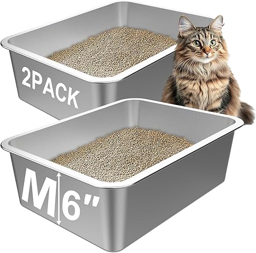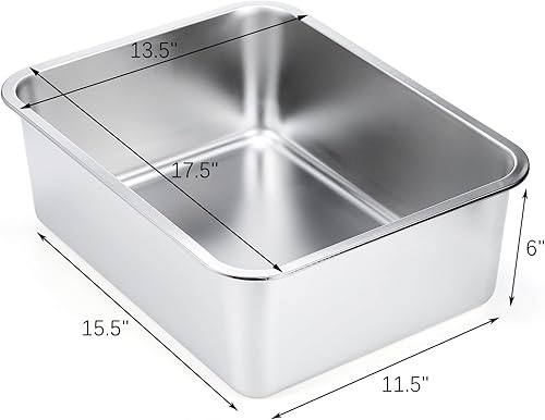 Package Includes: You will receive 2 pack stainless steel cat litter boxes, each metal cat box measures approx. 17.5 x 13.5 x 6 inches, which are applied to cats, kittens, rabbits, ferrets, hamsters, hedgehog and other small pets; You can easily take care of multiple kittens in the house by these litter boxes.