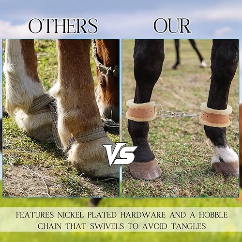 Uncompromising Quality: crafted from genuine leather and durable chains, our product promises sturdiness and reliability you can trust; This ensures your livestock stands the test of time, even under rigorous outdoor use; Rest easy knowing that you're investing in a robust solution that's both effective and long-lasting, offering peace of mind in meeting your livestock's needs.It is not suitable for horses with larger bodies. The adjustable range is 10-13.4 inches.