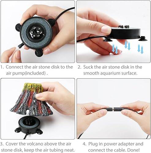 Easy to Use: Install the bubble lamp under the volcano stone and connect the air pump and the bubble Light. If you have any problem, please feel free to contact us. We will do our best to solve it. Thanks.