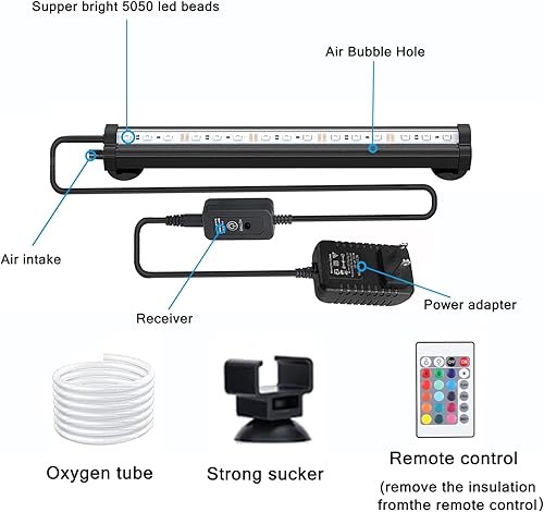 [Aquarium Lights for Fish Tank]The Underwater Submersible aquarium bubbler light is composed of a row of uniform and fine pores.Use the supplied air tube to connect the fish tank light to the air pump, provides oxygen and creating a spectacular bubble curtain wall effect that provides oxygen.(Air pump not included)