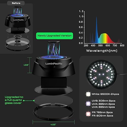 Energy-Efficient and Long-lasting LED Technology: Our high-quality UVB LEDs have a lifespan of up to 12,000 hours, so replacement is rarely necessary. Our advanced LED technology offers a high light output while consuming very little power, helping you to save money while protecting the environment. We also provide warranty, returns and exchanges service for every LuminPacific consumer.