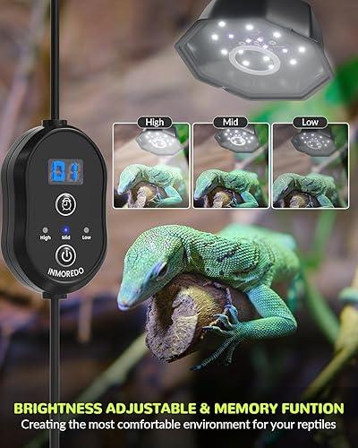Two Illumination Modes: LED UVB reptile light with One-click switch between Rainforest (5.0 UVB) and Desert (10.0 UVB) modes; perfectly tailored for tropical and arid reptiles without swapping bulbs