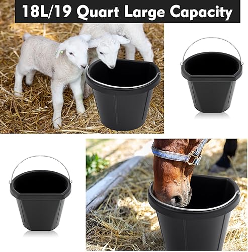 Large Capacity Design: each bucket has a capacity of 18 liters (19QT), which can meet the needs of the horse's daily drinking water and feed storage, reducing the hassle of frequent additions; This horse feed bucket provides ample space to accommodate a substantial amount of feed, rambunctious animals