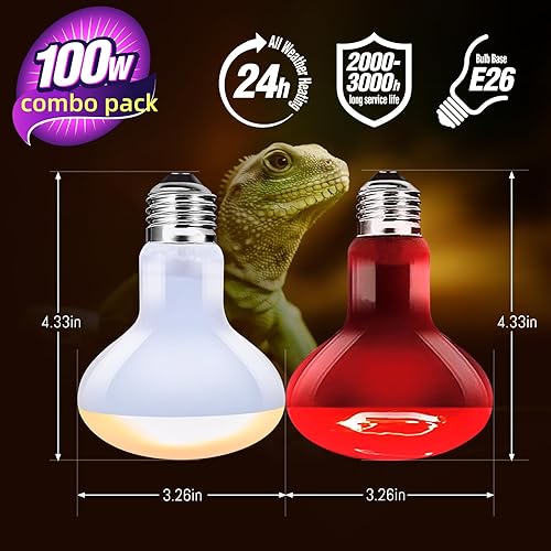 * Value Combo :Day and Night Heat Lamp Combo Pack. One UVA Incandescent Basking Spotlight Bulbs And One Red Infrared Night Heating Lamp. Use In Combination To Simulate The Light Changes Of The Natural Environment During The Day And Night