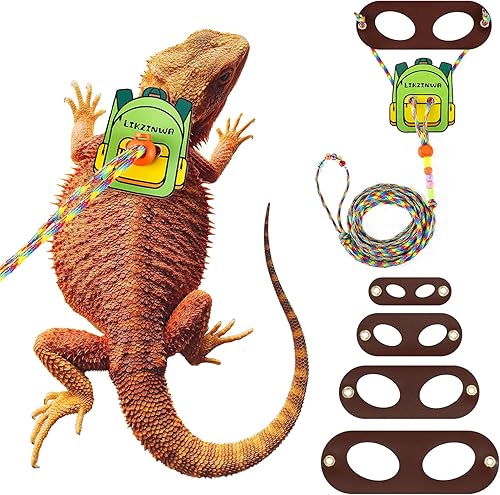 【Durable and Safe Material】Bearded dragon leather leash is made of super soft leather harness and durable nylon rope. The soft and snug leather will not hurt the lizard and the durable and lightweight nylon rope is odorless and non-toxic, very pet friendly, you can take it with you on your trip and enjoy your good time.