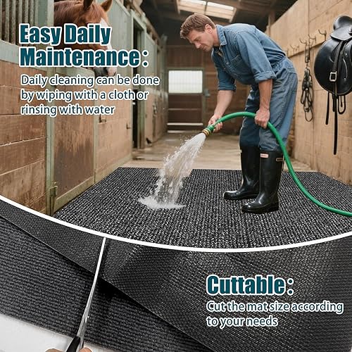 Wide Range of Uses:Not only suitable for stables, but also for cattle sheds, sheep pens, dog kennels and other livestock facilities. Can also be used as a training mat, garage mat or work mat, slip-resistant and wear-resistant, with multiple uses