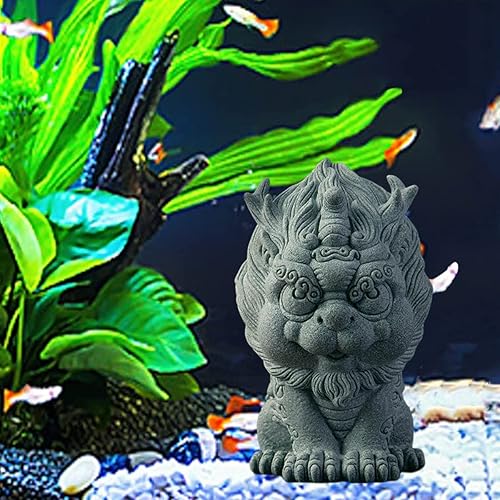 Natural Material: Asian fu dog figurine made of natural sandstone, excellent workmanship. non-toxic and harmless to your fish, fits for any kinds of water.