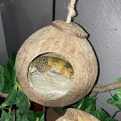 Safe Material:Leopard gecko tank accessories climbing is made of all-natural coconut shell with ladder.Gecko tank accessories is safe for pet.Crested gecko tank accessories coconut encourages pet to climb up and down for exercise to keep it healthy & active