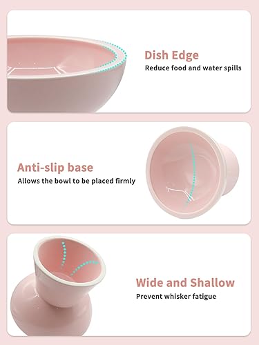 【Extra Wide Whiskper-Friendly】The shallow 6'' wide tray keeps your cat's whiskers from touching the edges, thus reducing whisker fatigue. The rim of the bowl is just the right height to not be sharp or hard on your cat's teeth.