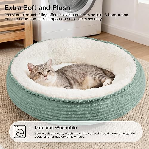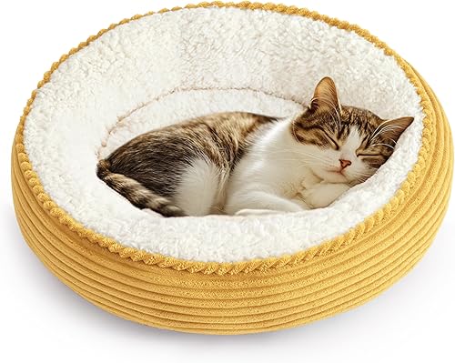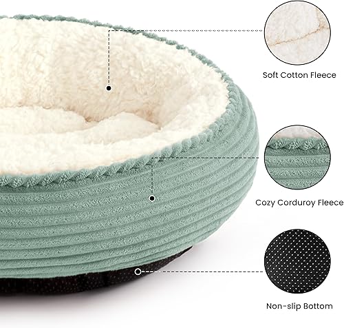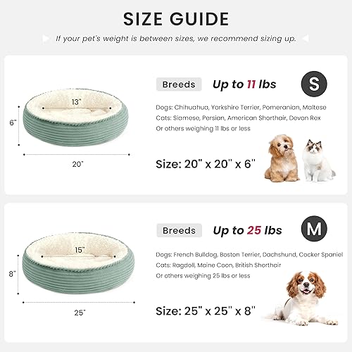Donut Cuddler Shape: The round dog bed allows pets to curl up while the raised rim creates a sense of security and provides head and neck support. Premium ultra-soft filling offers joint and muscle pain relief, is a great choice for elderly or sick dog pets. The 20 inch round pet bed is perfect for cat or puppy and other pets up to 11 lbs.