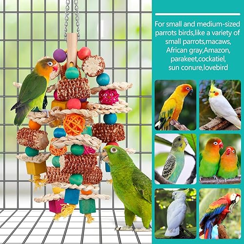 PROMOTES BEAK HEALTH: Chewing on the wooden blocks,beads,corn cob,corn husk,rattan balls help keep your bird's beak in good condition by encouraging natural wear and preventing overgrowth.