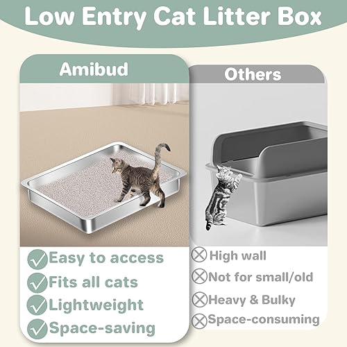 【Perfect for Multiple Uses】: This low entry litter box for kittens and senior cats serves as a shallow kitten litter box, ensuring comfort and convenience for pets of all ages. Upgrade your pet's bathroom experience with this small stainless steel litter box today!