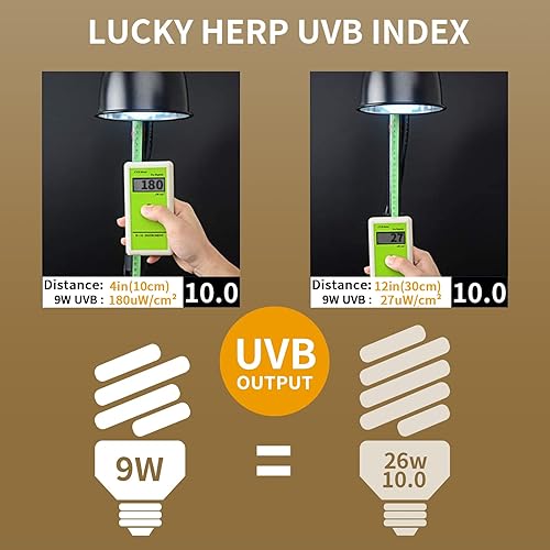 Low Degradation & Longer-Lasting UVB Radiation - LUCKY HERP 23W UVB 10.0 reptile light bulb is continuously updated with technology to ensure low degradation of UVB radiation, providing long-lasting and stable UVB output. This continuous and stable UVB radiation is crucial for the health of reptile pets. Our UVB light bulb can provide your pet with longer-lasting UVB exposure, with a UVB lifespan of up to 1 year, reducing the need for frequent bulb replacements.