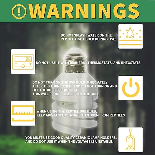 Wide Applications - This UVB 10.0 light bulb is specifically designed for desert and high sunlight-requiring reptiles, suitable for all desert-dwelling reptiles such as bearded dragons, lizards, leopard geckos, iguanas, tortoises, snakes, and other desert reptiles and amphibians. It is compatible with various standard E26 lamp bases, 120V, making installation and replacement convenient. We recommend replacing the bulb every 6 to 12 months to ensure continuous effective UVB output.