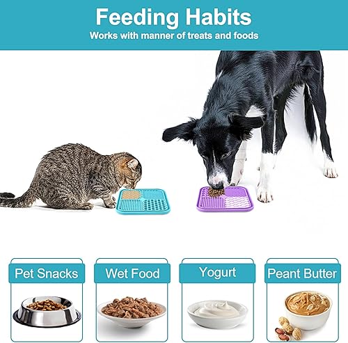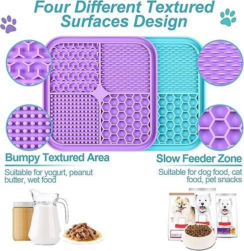 【Slow Feeder Mat for Dogs & Cats】: Four different textured surfaces design is prefect for spreadable treats, such as cream cheese, yoghurt, peanut butter and so on. It is a peanut butter mat for dogs to extend the feeding time and aid digestion. Lick mat is an ideal size for cats, puppies, small meduim and large dogs.
