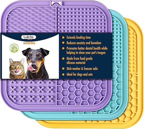 【Reduces anxiety, boredom and destructive behavior】: The lick pads help calm pets. It is a boredom buster for dog to suppress destructive behavio and relieves anxiety at home alone. This dog treat lick mat is great for stressful times such vet visits, bath time, nail clipping, injury recovery as well as thunderstorms and fireworks.