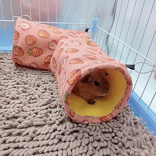 SOFT&COZY PET HAMMOCK: The guinea pig tunnel is made of soft arctic fluff and enduring linen, can provide a warm bed and perfect hideout for your small pet. It is easy to attach to the pet cage with the enduring metal hooks.