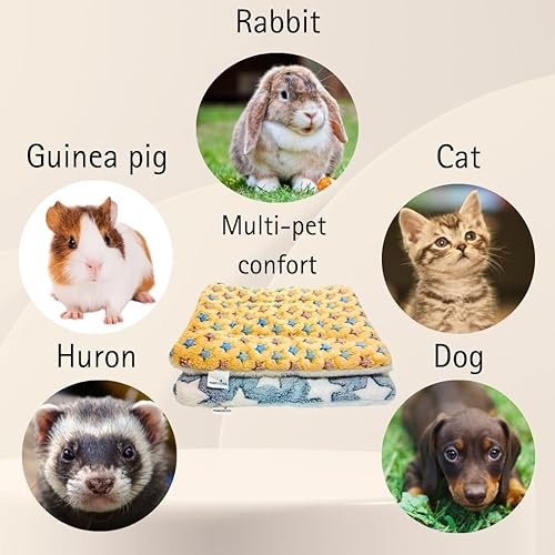 【Quantity & Size】The package contains 2 pieces of soft fleece bed mats with the size of 13''L x 10''W. They are designed for guinea pig, and also suitable for other small animals with the size of 8-10 inch, such as hamster, rat, bunny, rabbit, and etc. The quantity is sufficient to meet your pet’s daily use and replacement