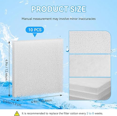 【Dimensions and Packaging】:For fluval foam filter is crafted with dimensions of approximately 4.9 x 4.9 x 0.51 inches (12.44 x 12.44 x 1.3 cm), includes 10 white aquarium filter pads, meeting the needs of aquarium enthusiasts who require frequent filter replacements
