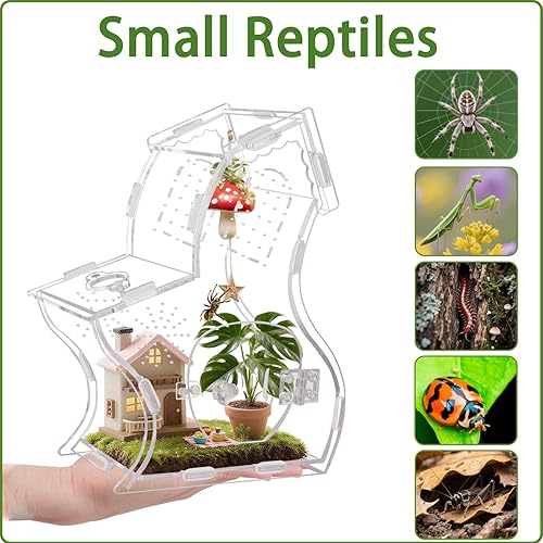 【Versatile Habitat】 – Ideal for jumping spiders, mantises, small geckos, beetles, and arboreal reptiles—a stylish and safe home for your tiny pets!