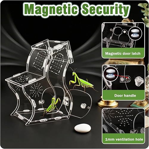 【Escape-Proof Design】 – Features a secure magnetic locking door to prevent pets like jumping spiders, tarantulas, or scorpions from escaping while allowing easy feeding access.