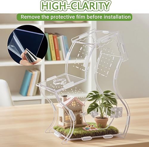 【Crystal-Clear Acrylic】 – Made of 3mm thick durable acrylic, lighter and stronger than glass, offering a 360° unobstructed view for observing or educational displays.