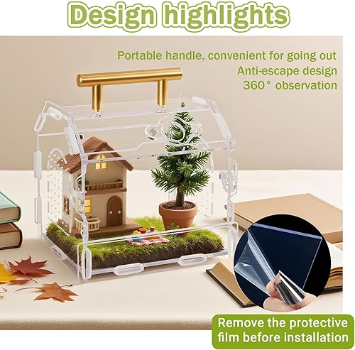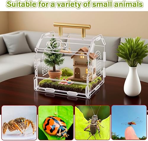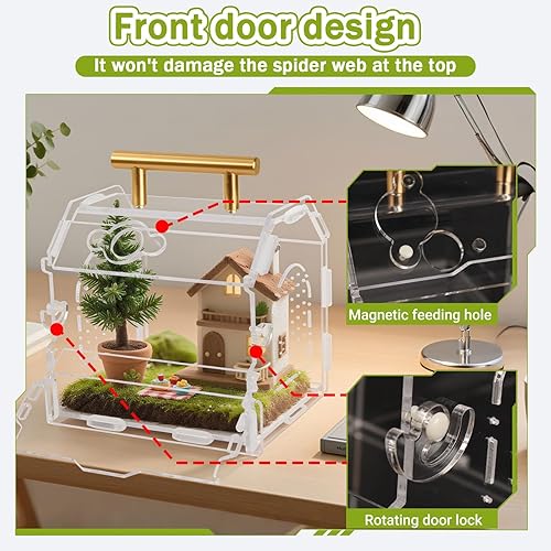 【Travel-Ready】 Built-in metal handle for portability, perfect for taking your spider or small reptile to vet visits or exhibitions.