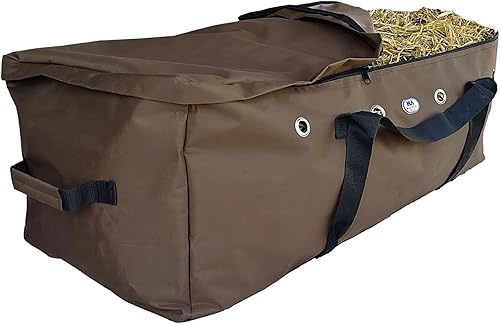 Easy to Transport – Our Bale bags have full around carry strap and also 2 padded handles on both side so it can be easily carried by one or two people around the barn for feeding, and also fits comfortably is Cars, Trucks, Travel Trailer etc. and easy to transport.