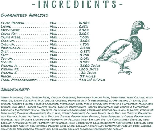 Comment on "Manna Pro Duck Layer Pellet, High Protein for Increased Egg Production, Formulated with Probiotics to Support Healthy Digestion, 25 lbs(25 Pound (Pack of 1),Duck Layer Pellet)"