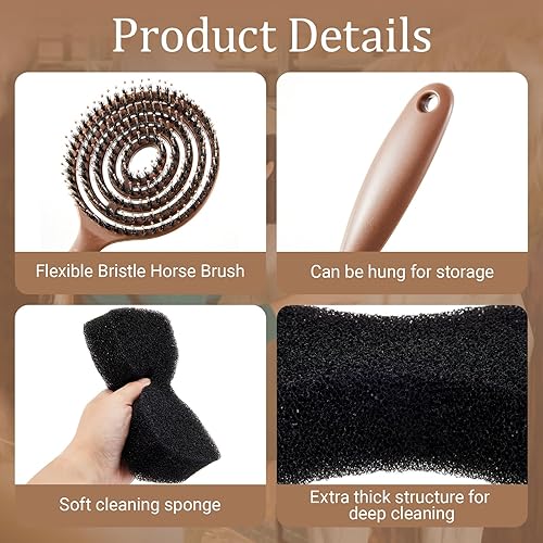 Gentle Effective Cleaning: the horse brush features flexible bristles that glide smoothly through the mane and tail, removing dust and knots without pulling; The sponges are gentle yet deep-cleaning, fit for post-ride sweat removal and keeping your horse fresh
