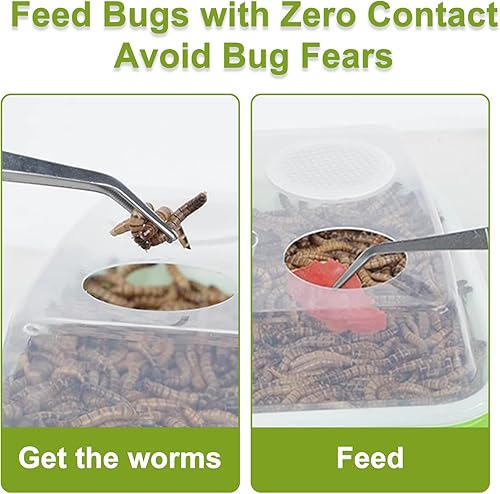 Prevent insect fear:Our mealworms keeper equipped with insect pick tweezers,can achieve zero contact through the top vent pick insects,feeding,effectively reduce your fear of insects.