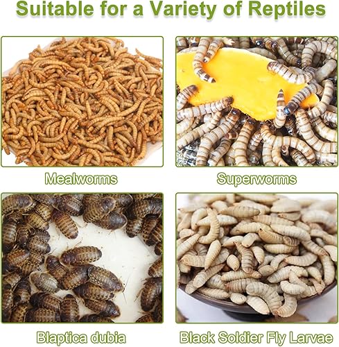 Large capacity and good compatibility:Our worm container is suitable for feeding on a variety of insects such as mealworms,super worms,fly maggots,etc.It is 12.2x9.8x3.9 inch in size and can hold thousands of mealworms in a large capacity,provide plenty of food for your bearded dragon,leopard gecko,lizard, gecko,frog,fish and bird.