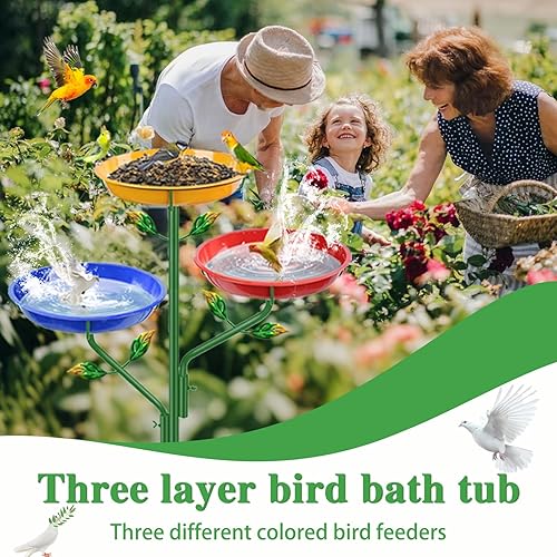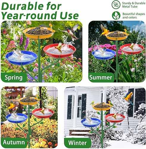 Metal Bird Bath for Outside, 39.4" H Birdbaths for Outdoors, 2 in 1 Free Standing Birdbath with 5-Prong Metal Stake, 3 Tier Large Bird Feeder Bowl for Garden Yard Lawn Decor