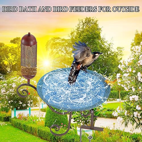 Functional Deck Bird Bath: The bird bath for deck is made of metal. The bird bowl is 2 inches, it is a friendly depth for bird bathing. The top of the bird feeder can be opened to hold bird food, the three small holes at the bottom of the bird feeder help drain water and keep bird food dry.