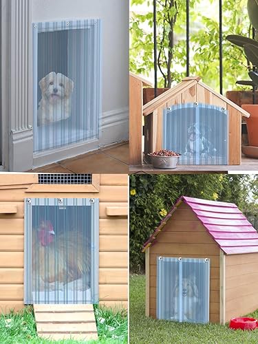 THOUGHTFUL DESIGN: The dog door vinyl curtain strip is transparent light blue, easy to observe the outdoor, it is convenient for small animals to enter and exit freely, avoiding that they are not clear about the location of door, which provides sufficient safety.