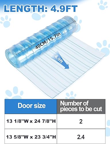 DIY DOG/CAT DOOR: The size is about 4.9ft (L) x 15.7in (W), you can cut according to the actual size and shape of your pet door. Note: When received, there may be some deformation and unpleasant smell. It is recommended to press it in a ventilated place for a period of time before using.