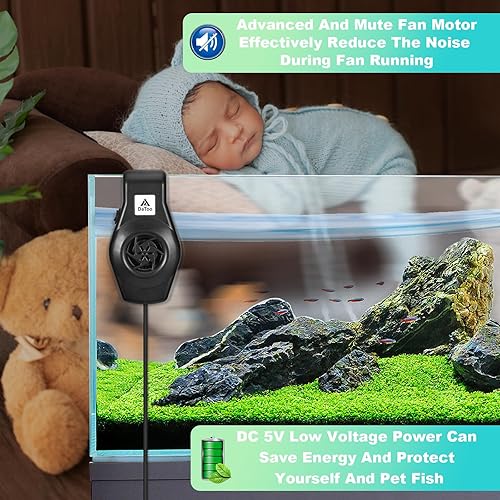 【Quiet & Low Power Consumption】: DaToo mini aquarium cooling fan use advanced and mute fan motor, effectively reducing the noise during fan running which make DaToo small aquarium fan quieter than other similar products, giving you a quiet and cool summer. DC 5V low voltage power, low energy consumption can not only save energy but also protect your fish and yourself. No need to purchase additional accessories and worry about compatibility, we provide the power plug in the package.