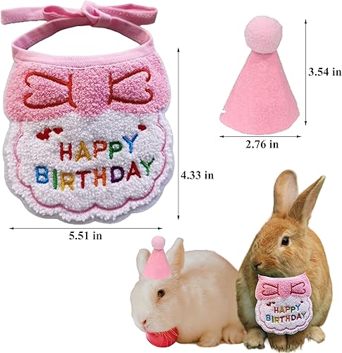 Comfort and style combined: We prioritize your rabbit's comfort without compromising style.The soft cotton fabric of the rabbit clothes pet combined with the breathable polyester of the hats for pet rabbit and cute bib ensures absolute comfort when wear for your girl pet. The adjustable mini birthday hats and bib ensure a suitable fit, allowing your rabbit to move freely and enjoy their special day without any discomfort.