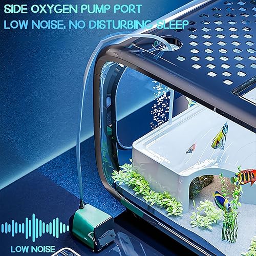 【Low-Maintenance System】This small fish tank features a compartmentalized betta feeding system for easy water filling, minimizing maintenance time. It stabilizes the aquarium ecosystem without frequent lid adjustments or disrupting the biological balance.