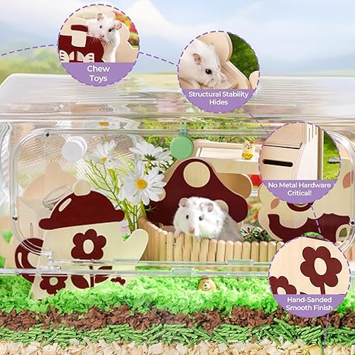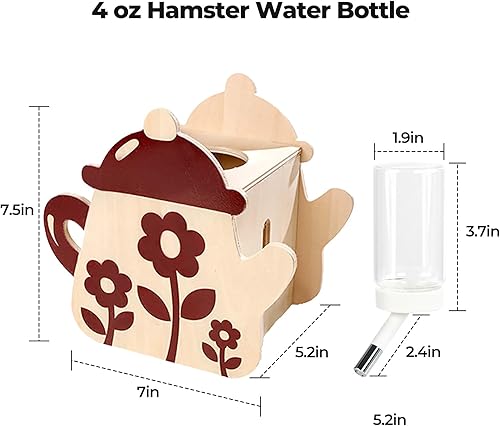 Space-Saving & Decorative:Hamster water bottle stand compact 5.5in x5.2in x7.1in size fits most cages while adding a rustic charm to habitats