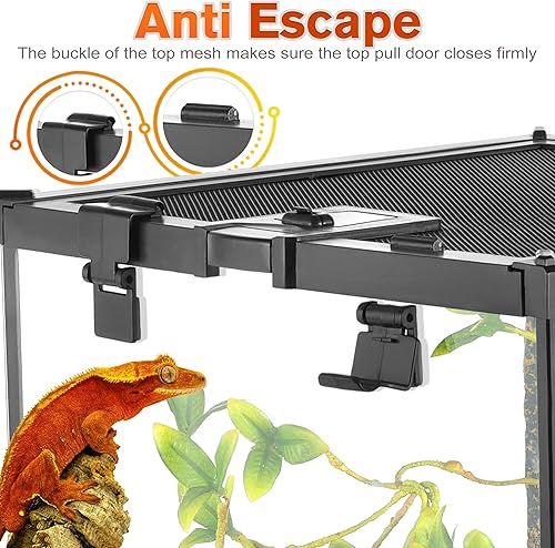 - Pull-out Top Mesh : The habitat is simple to maintain by just sliding the top open, and the metal screen provides enough ventilation.