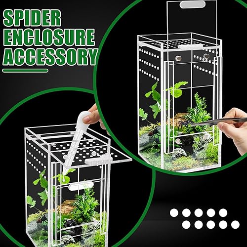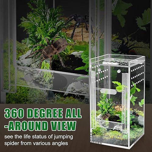 360 DEGREE VIEW: This acrylic spider enclosure adopts a 360 degree all-round transparent design, allowing people to see the life status of small pets from various angles, which is convenient for people to feed them.