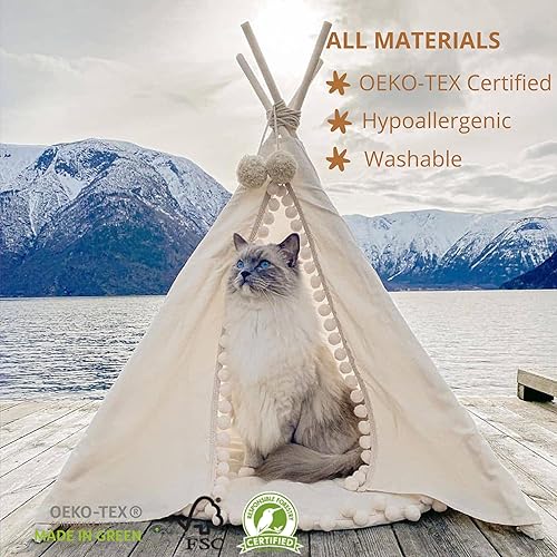 Suitable for Rabbits, Cats, Small Dogs and other pets: The pet teepee is suitable for cats and small dogs up to 9 lbs, providing them with a secure and comfortable space to call their own.