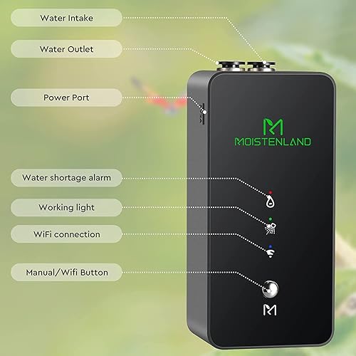 How it works: the device's inner is a powerful water pump that pumps the water from reservoir to reptile terrarium. Moistenland reptile terrariums misting system is also suitable for Paludarium, Vivarium, Reptiles, and Amphibians.
